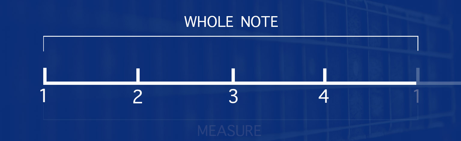 A whole note is simply a note or chord that is played on the first beat and lasts for a whole measure. (Which now we know is four beats).